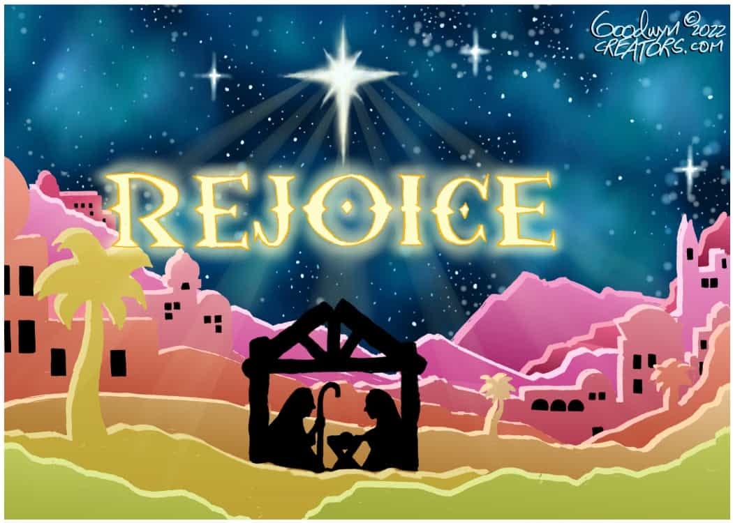 My search brought me to Ephesians 1:1-10. Although it’s likely not often referenced for Christmas, I thought it worked well with the cartoon, reminding us of the baby in Bethlehem and that God is ultimately uniting everything through Jesus’ incarnation and our salvation.